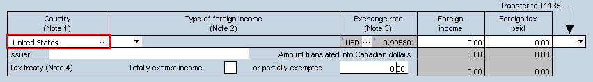 - Based on the country selected in the Foreign form, foreign income and taxes are taken into account in the calculation of the federal and provincial foreign tax credits (Forms T2209 and T2036).