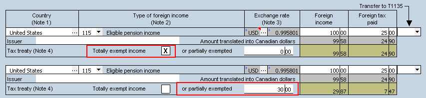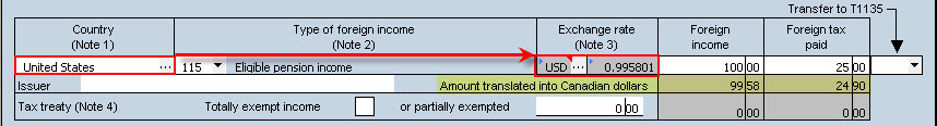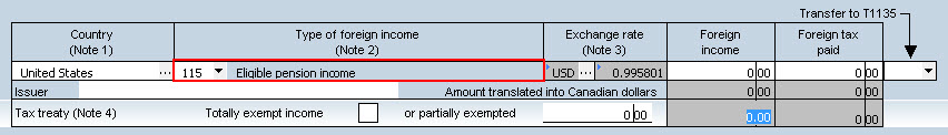 - The calculation of eligible pension income on line 31400 will be adjusted automatically based on the type of line 11500 foreign pension income selected. This will also affect the amount of pension income that can be split with the spouse on Form T1032.