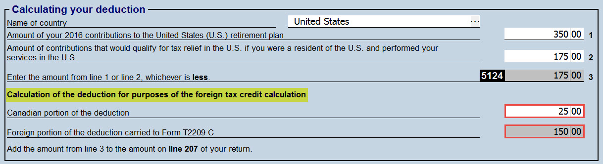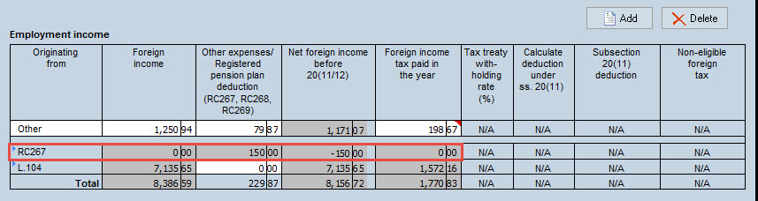 This way, Taxprep will automatically transfer to Form T2209 C the registered pension plan deduction that should be taken into account in the foreign tax credit calculation.