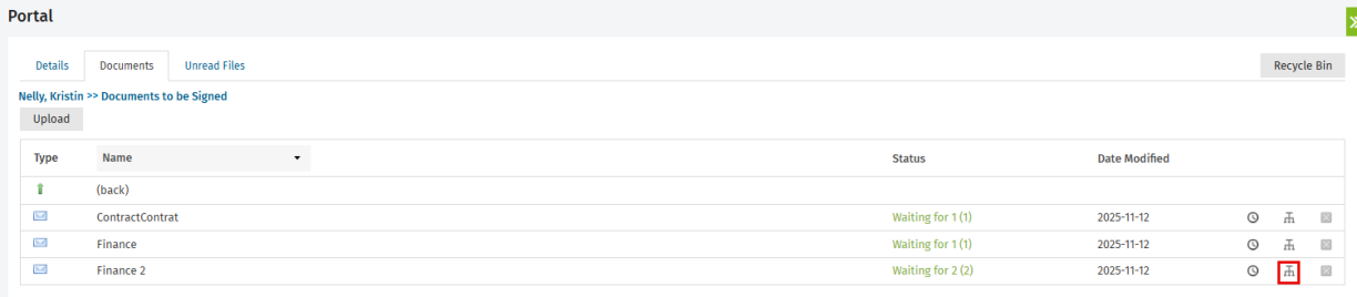 To view the signing progress, go to the Documents to be Signed folder and click the Signing Order button