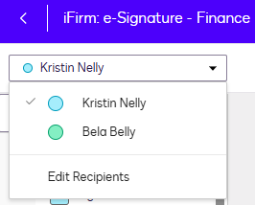When you click the Edit Tags & Send button in the Add Document dialog box, the document opens in DocuSign. You can then add the tags for each signatory using the Fields menu before clicking Send. Each signatory name is colour coded.