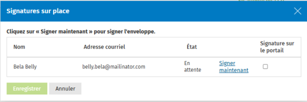 that appears on the row of the document to be signed. - In the Live e-signature dialog box, click the Sign Now link on the row of the required signatory.