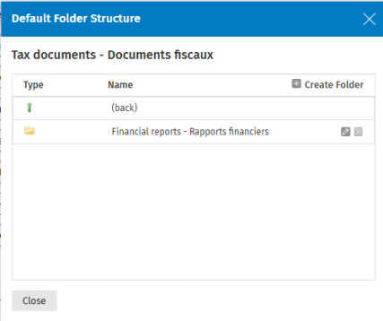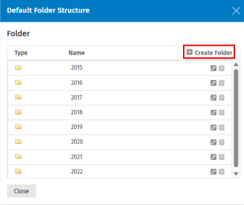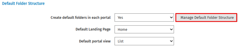 You can edit the default folder structure that is applied to a specific portal, if required. For example, you may want to add another folder or delete one that is not in use. Similarly, if you do not use a default folder structure, you can add folders to individual portals as required.