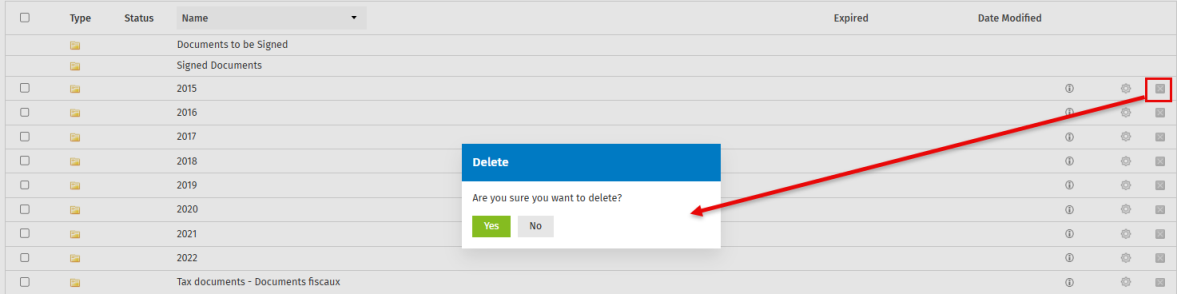 icon at the end of the row of the folder you want to delete. - Click Yes to confirm.