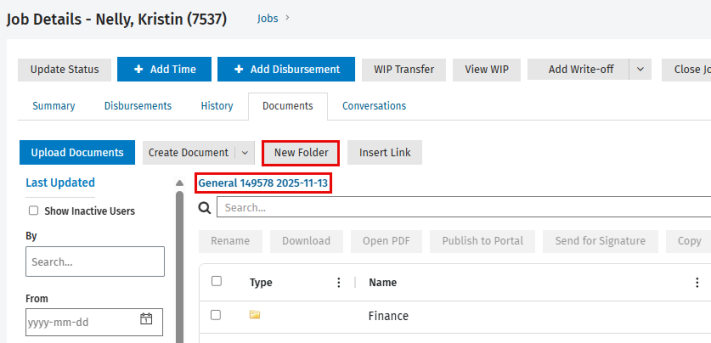 - Jobs folders: These folders are available for every job that is created for the contact within the Jobs & Billing module.