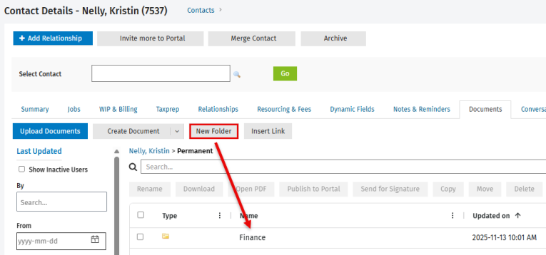 - Contact Documents: The flexibility of creating a folder structure solely for the contact is available in this folder.