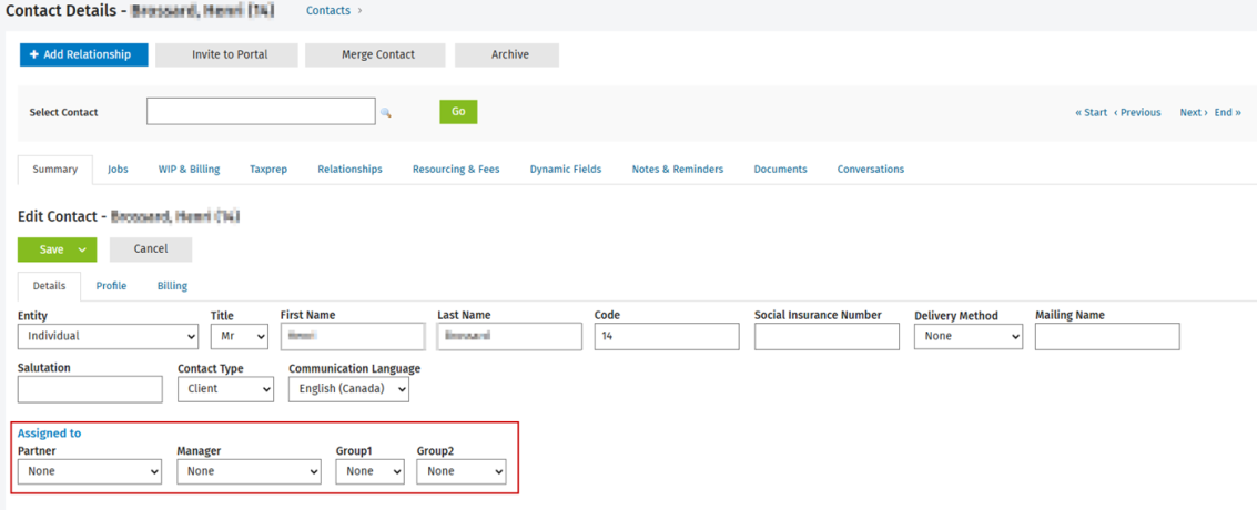 Note that some CCH iFirm functions, such as creating a return and adding a spouse or dependant, may require the creation of a new contact if they do not yet exist in CCH iFirm Contacts. Therefore, this role is also required.