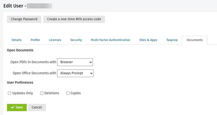 You are now able to control the Documents user settings from the new Documents tab in the user settings.