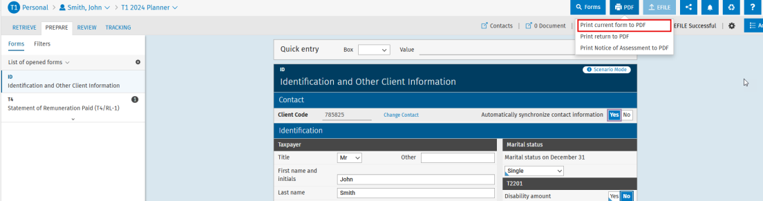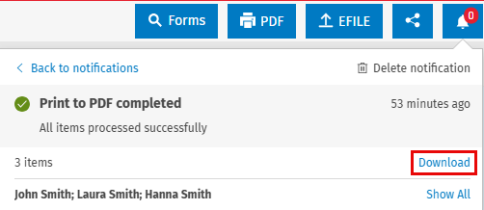 Printing forms and tax returns can be done directly from the CCH iFirm Taxprep module, allowing digital documents to be created and easily accessed in PDF format.