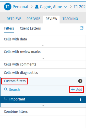 Tax - Returns - Review - Custom Filters - Add, Edit