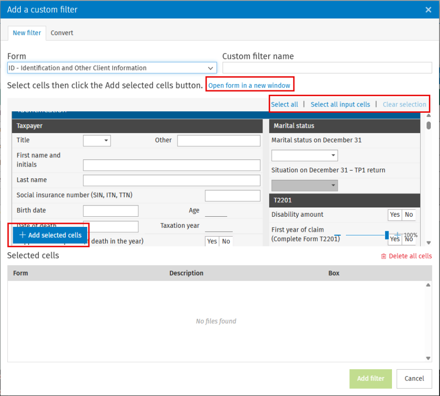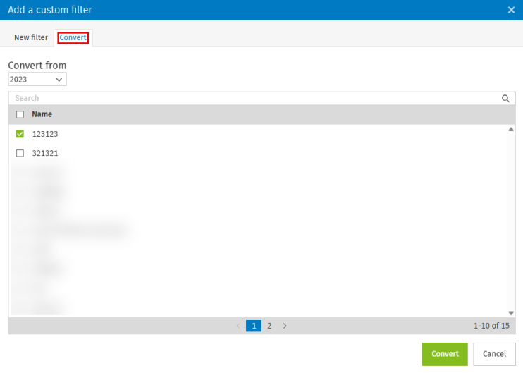 Select the tax year from which you want to convert the filter and choose the custom filter you want to reuse.
