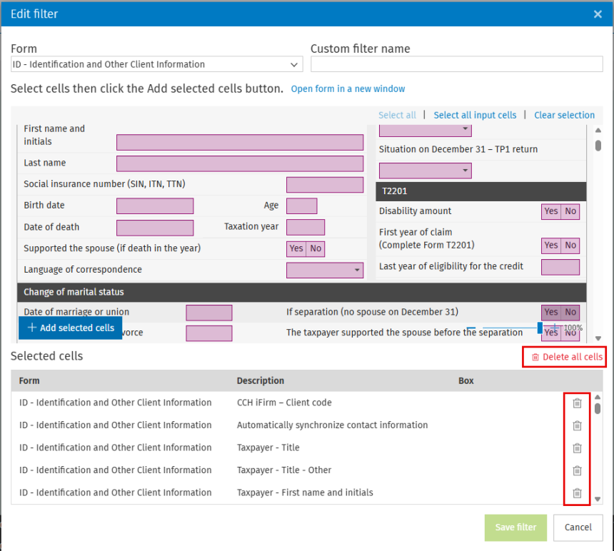 You can export the custom filters data using the Export to CSV feature. This is especially useful when collaborating with external parties who need to complete certain sections of the return outside of CCH iFirm Taxprep.
