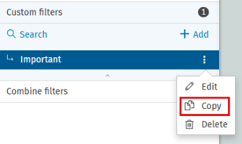 Click the three vertical dots next to the filter name, then select Copy from the menu.
