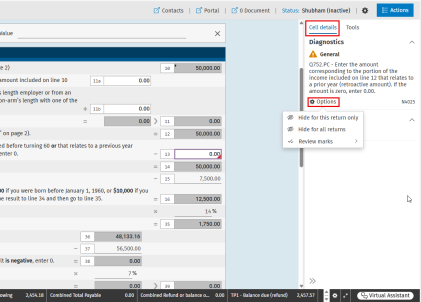 Depending on the way the diagnostic was hidden, select either Show for this return only or Show for all returns to restore the diagnostic.
