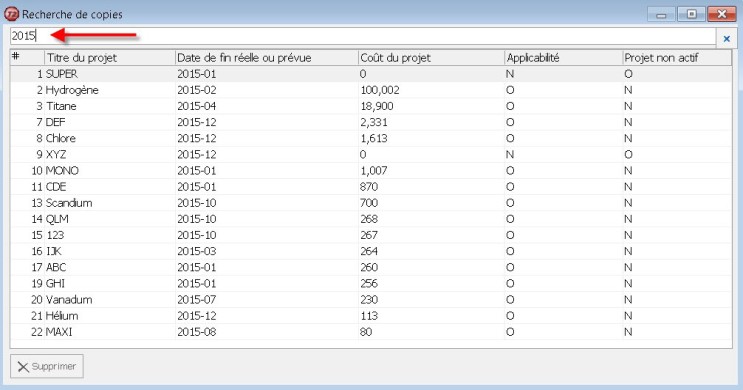 Rechercher dans la liste des projets