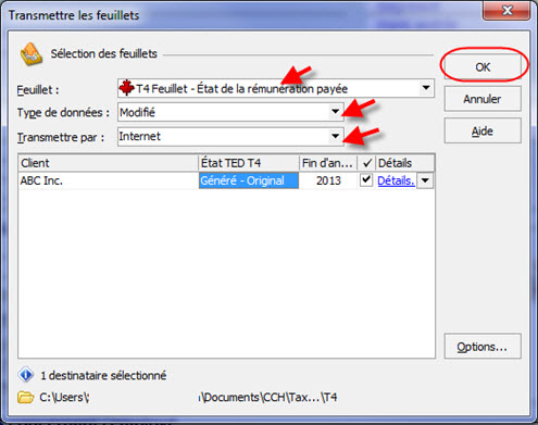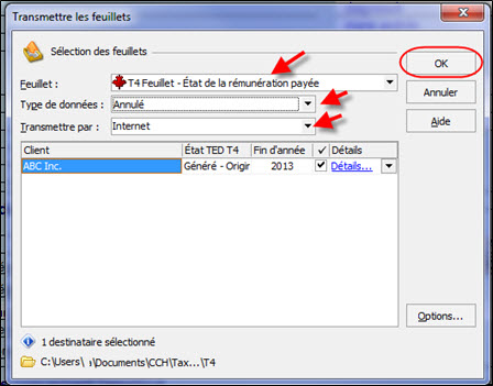 - Cliquez sur OK pour générer le fichier contenant les feuillets/relevés modifiés à transmettre.