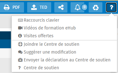 Pour accéder aux ressources d’aide ou pour soumettre une suggestion ou une idée relativement à ce produit, cliquez sur l’icône suivante dans le coin supérieur droit de l’écran :