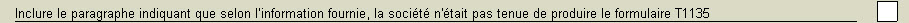 Options concernant l’impression du paragraphe indiquant que selon l’information fournie, la société n'était pas tenue de produire le formulaire T1135