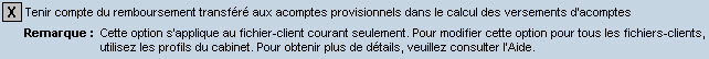 Voici un exemple illustrant le fonctionnement de la colonne Remboursement transféré aux acomptes provisionnels :