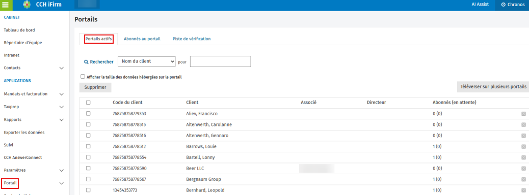 - Cliquez sur le nom du client dans le portail duquel vous voulez supprimer un fichier.