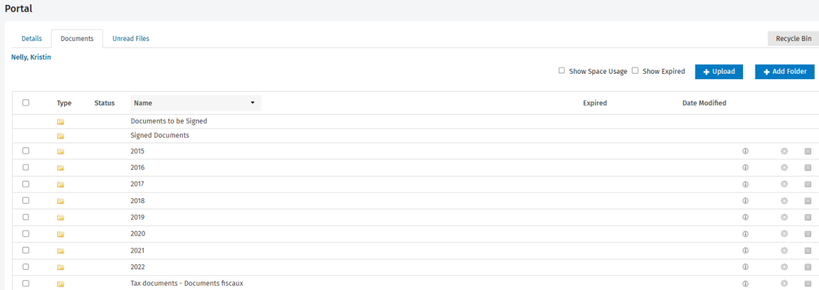 Au besoin, vous pouvez modifier la structure de dossiers par défaut qui est définie pour un portail spécifique. Par exemple, vous pourriez vouloir ajouter un autre dossier ou supprimer un dossier que vous n'utilisez plus. De la même façon, si vous n'utilisez pas une structure de dossiers par défaut, vous pouvez ajouter des dossiers à des portails individuels au besoin.
