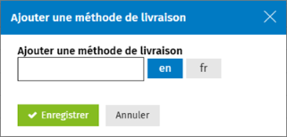 Veuillez saisir un nom français pour la nouvelle méthode de livraison dans la case Ajouter une méthode de livraison. Vous pouvez configurer un nom anglais en cliquant sur le bouton