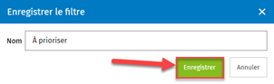 Il est possible de créer et d’enregistrer des filtres pour les réutiliser. Ceux-ci sont enregistrés dans la section Mes filtres.