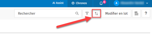 L’option Trier par a été retirée des filtres et a été remplacée par le bouton .
