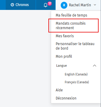 - Cliquez sur Mandats consultés récemment.
