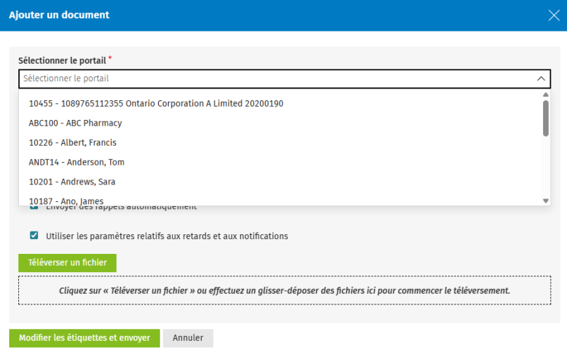 Faites défiler la liste déroulante Sélectionner le portail ou recherchez le portail dans lequel vous voulez envoyer le document.