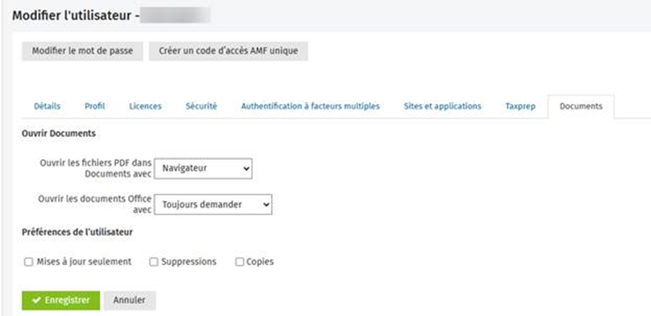 Vous êtes désormais en mesure de contrôler les paramètres de l’utilisateur du module Documents à partir du nouvel onglet Documents qui figure dans les paramètres de l’utilisateur.