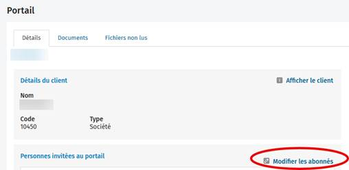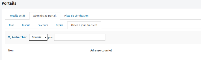 Naviguez vers Portails > Abonnés au portail > Mises à jour du client.