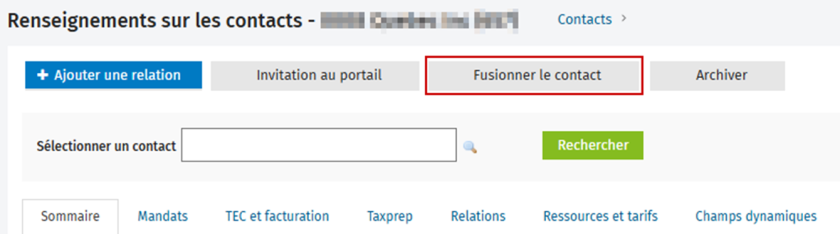 L’autorisation de sécurité Contacts – Fusionner les contacts a été ajoutée. Avec cette autorisation de sécurité, les utilisateurs auront accès au bouton Fusionner le contact qui est visible lorsque l’on consulte un contact. Préalablement, l’autorisation de sécurité Contacts – Visualiser, ajouter ou modifier des contacts était requise pour cette fonctionnalité.